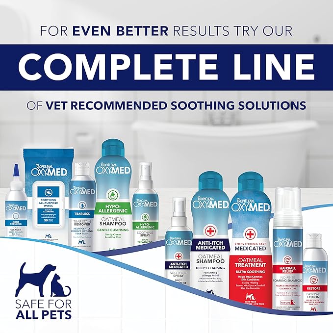 - Oxymed - For total care use with Oxymed’s ear cleaner, soothing lotion, tear stain remover and wipes.