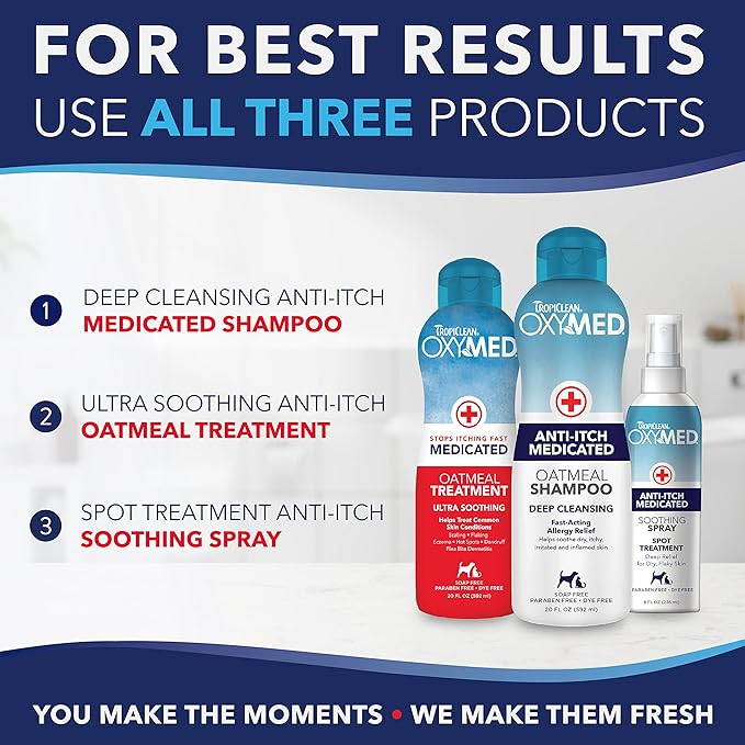 - RELIEF MADE EASY - Relief in three steps. Use our cat and dog oatmeal conditioner and shampoo with our spray for max results.