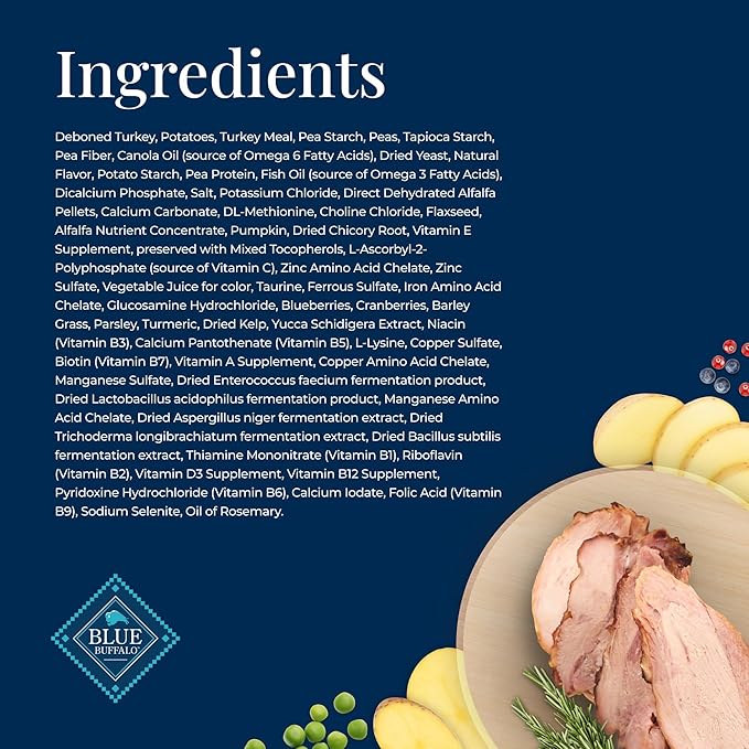 - REAL TURKEY FIRST: This Blue Buffalo dry dog food is made with real, high-quality turkey as the #1 ingredient