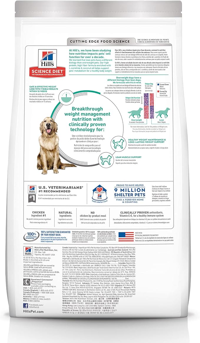 Hill's Science Diet Perfect Weight, Adult 1-6, Weight Management Support, Dry Dog Food, Chicken Recipe, 4 lb Bag