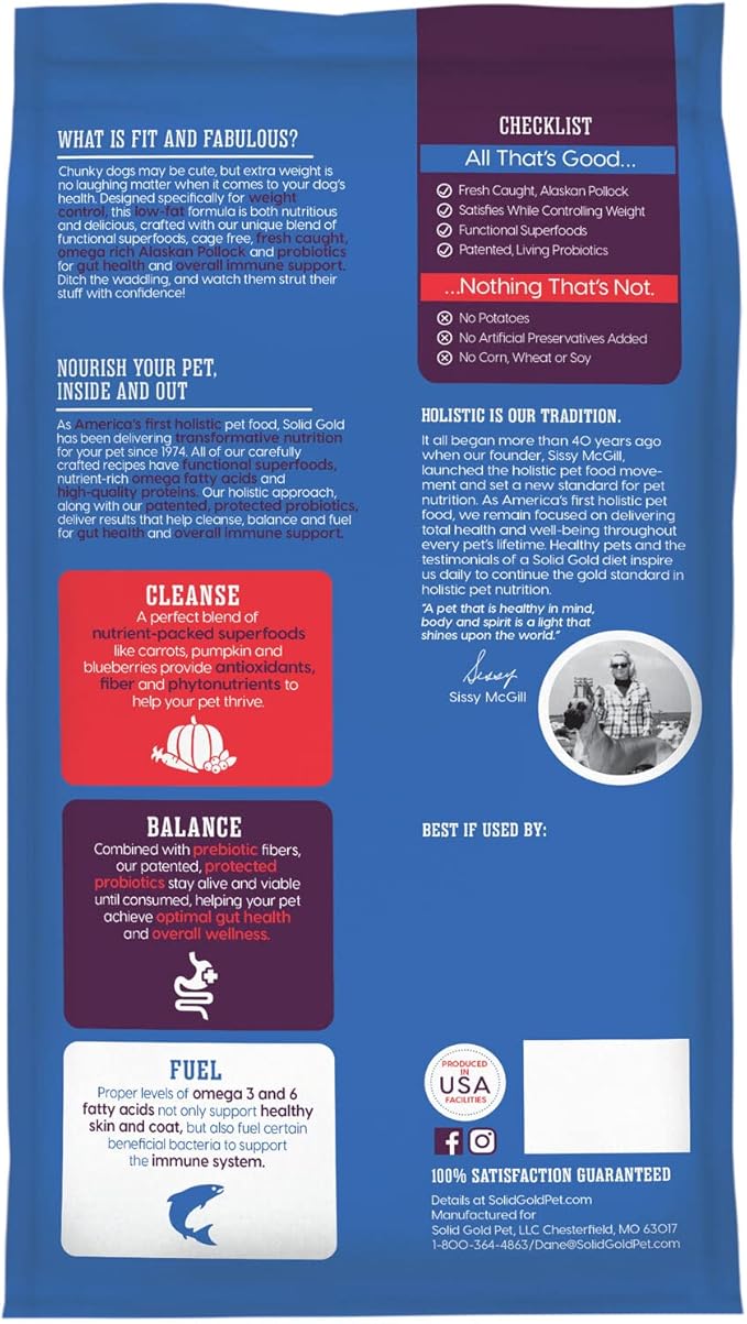 - Treat Your Dog to Something Fab! - Solid Gold Fit and Fabulous weight control dog food is a gluten free dog food that supports gut, immune, skin, and coat health for any adult breed.