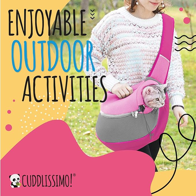 - 🐶 PERFECT FOR SMALL PETS - Cuddlissimo! pet sling carrier is designed for small and teacup dogs or cats, up to 6 pounds in weight. This dog sling has a padded bottom, and the neck opening is fully adjustable.