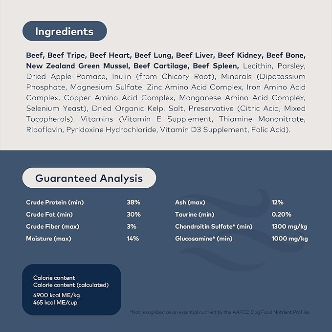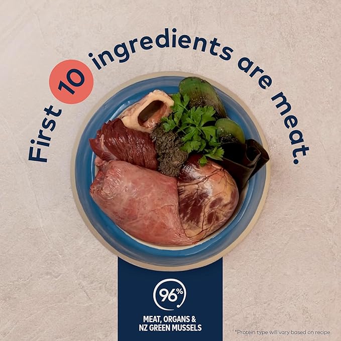 - HIGH PROTEIN, NUTRIENT DENSE: Authentic whole-prey ratios, featuring 96% free-range Beef, Organs, Bone, and New Zealand Green Mussels. Safely air-dried ingredients deliver peak nutrition and mouth-watering taste for the pickiest dogs.