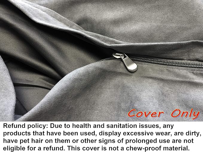 - The fabric's cover is luxury heavyweight 180 GSM synthetic suede with stains, dirt and wrinkle resistant. It comes with durable Zipper and strong industrial stitch for maximum durable and comfortable. The fabric is not chew proof which may not suitable for aggressive chewer.