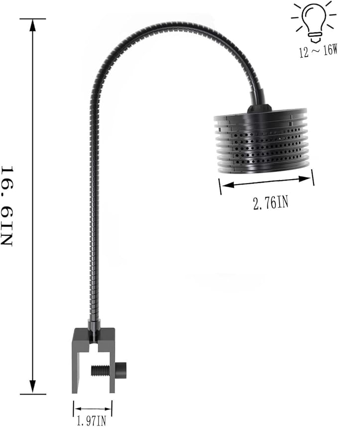 - Suitable for a wide range of tanks: With a diameter of 2.7 inches and height of 1.7", this clip on aquarium light is suitable for reef tanks ranging from 8" to 18" (45 cm) long. The 16" long bendable gooseneck makes installation easy and hassle-free