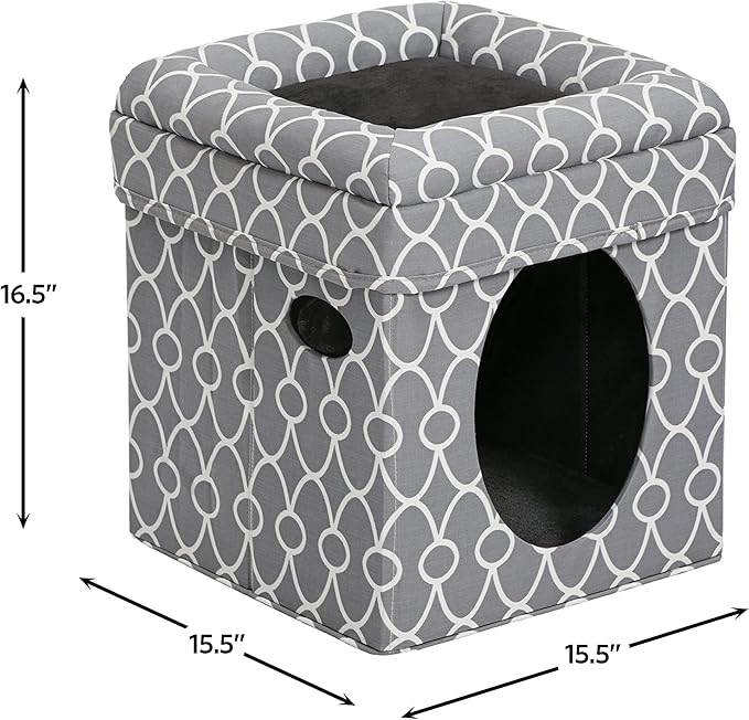- STYLISH CAT CUBE COMPLEMENTS THE HOME | Gray & white geometric print cat cube measures 15.5"W x 15.5"L x 16.5"H when assembled | 1-Year Manufacturer's Warranty