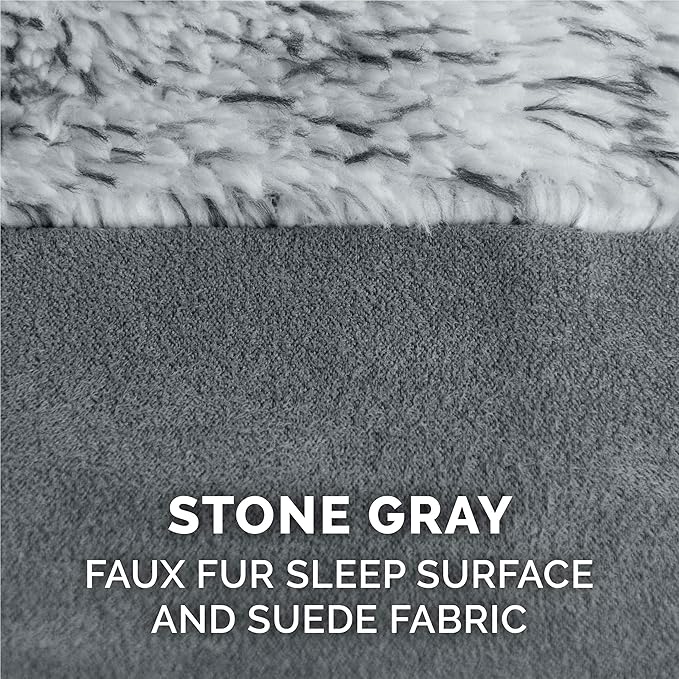 - SLEEP SURFACE: Featuring a cuddly soft plush faux fur main sleep surface and thick fluffy bolsters wrapped in easy-care suede; both are gentle on noses and paws for enhanced snuggling and burrowing comfort