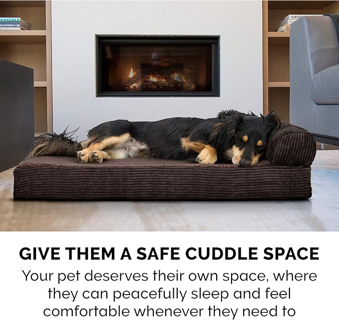 - SLEEP SURFACE: Featuring a cozy and insulating sherpa main sleep surface and a thick bolstered end wrapped in soft corduroy; both are gentle on noses and paws for enhanced snuggling and burrowing comfort