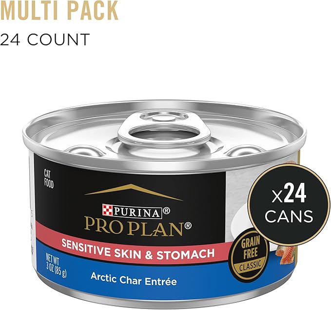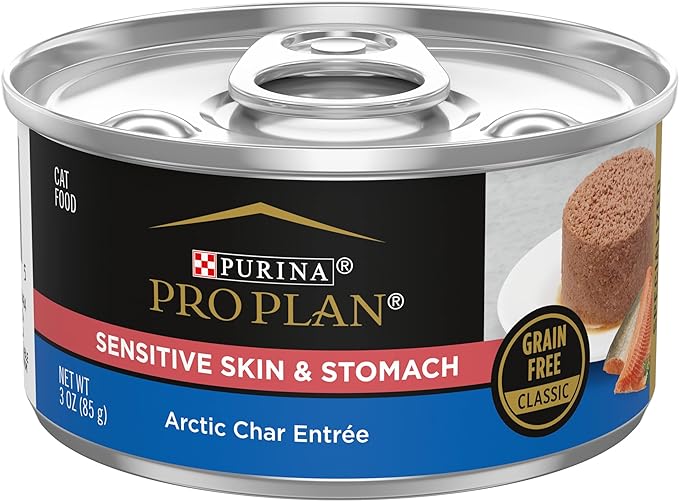 Purina Pro Plan Sensitive Skin and Stomach Cat Food Wet Pate, Sensitive Skin and Stomach Arctic Char Entree - (Pack of 24) 3 oz. Pull-Top Cans