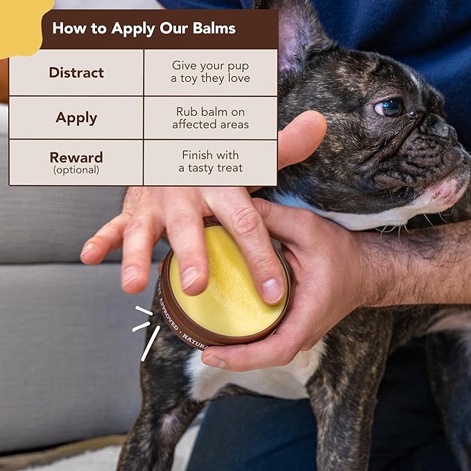 - SAFE & NATURAL – Our Skin Soother balm is crafted with 100% natural, non-toxic ingredients, ensuring it's safe even if your dog licks it. However, for best results, distract your pet after application to allow absorption. If irritation occurs, discontinue use and consult your veterinarian. This dog itching skin relief balm is designed with your pet’s safety in mind.