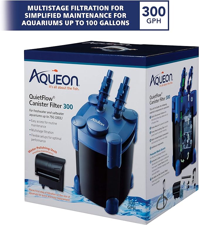 Aqueon QuietFlow Aquarium Fish Tank Canister Filter For 55-100 Gallon Aquariums