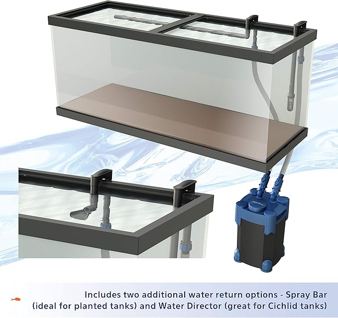 - Multiple water return options for optimal versatility to best suite a variety of aquarium habitats; spray bar, water director and water polishing unit