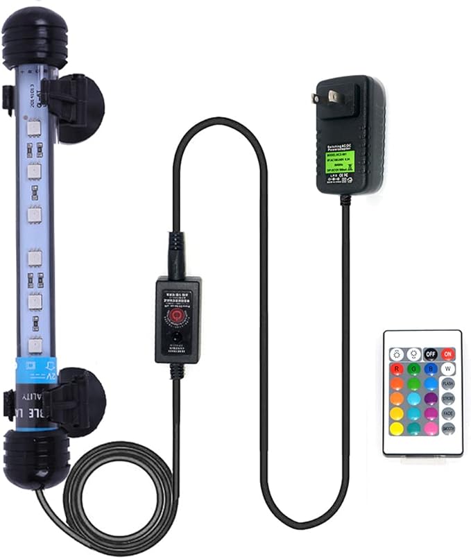 LED Aquarium Light, 7-44 Inch Waterproof Fish Light White with Blue, RGB Underwater Lamp Submersible LED Light for Fish Tank