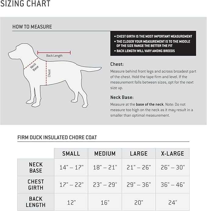 - Carhartt Firm Duck Insulated Dog Chore Coat. Durable dog coat with iconic roots for the hardest working dogs