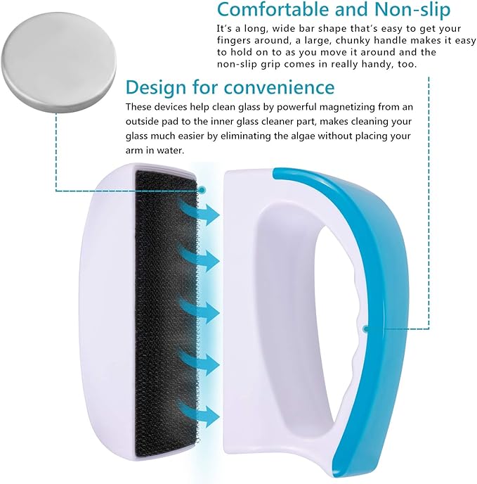 - 👏-Bestie of Aquarium : This device helps clean glass by magnetizing from an outside pad to the inner glass cleaner part, quickly and easily cleans away algae growth to make your aquarium stays healthy and looks its best.
