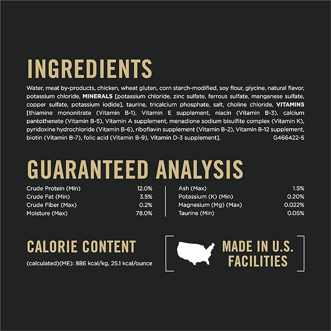 - Purina Pro Plan chicken in gravy cat food formula proudly manufactured at Purina-owned, U.S. facilities, and you can try it risk-free
