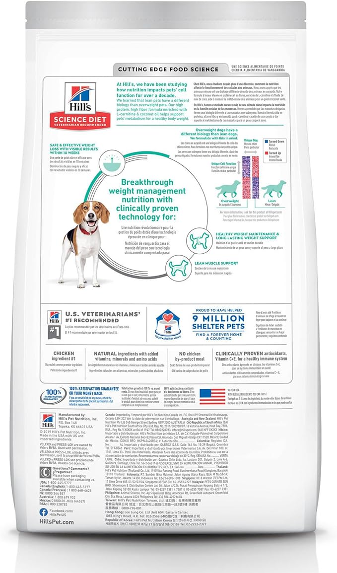 Hill's Science Diet Perfect Weight, Adult 1-6, Weight Management Support, Small Kibble, Dry Dog Food, Chicken Recipe, 4 lb Bag