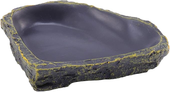 - Reptile Feeding Bowl Durable Resin Feeding Plate Rock Shape Food Water Feeding Dish for Lizard Gecko Tortoise