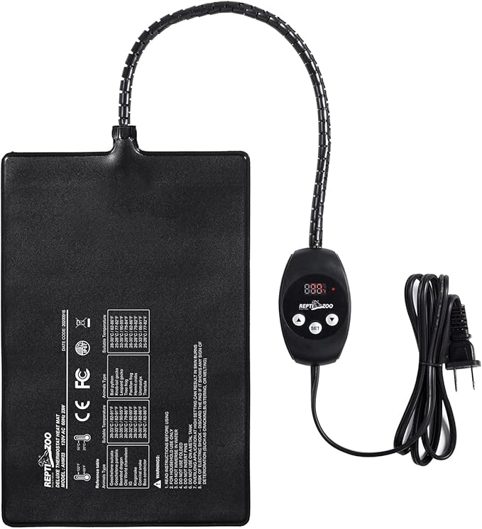 REPTI ZOO Upgrade Reptile Heat Mat with Thermostat - 8 x 12 Inch Reptile Heating Pad with Temperature Control for 30-40 gal Tank Reptiles Amphibians Hermit Crab Snake Lizard