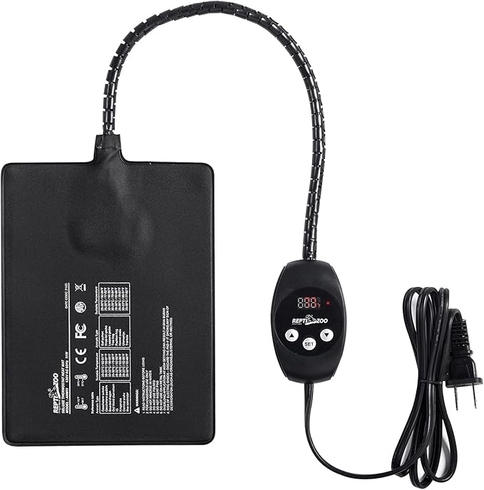 REPTI ZOO Upgrade Reptile Heat Mat with Thermostat - 6 x 8 Inch Reptile Heating Pad with Temperature Control for 10-20 gal Tank Reptiles Amphibians Hermit Crab Snake Lizard