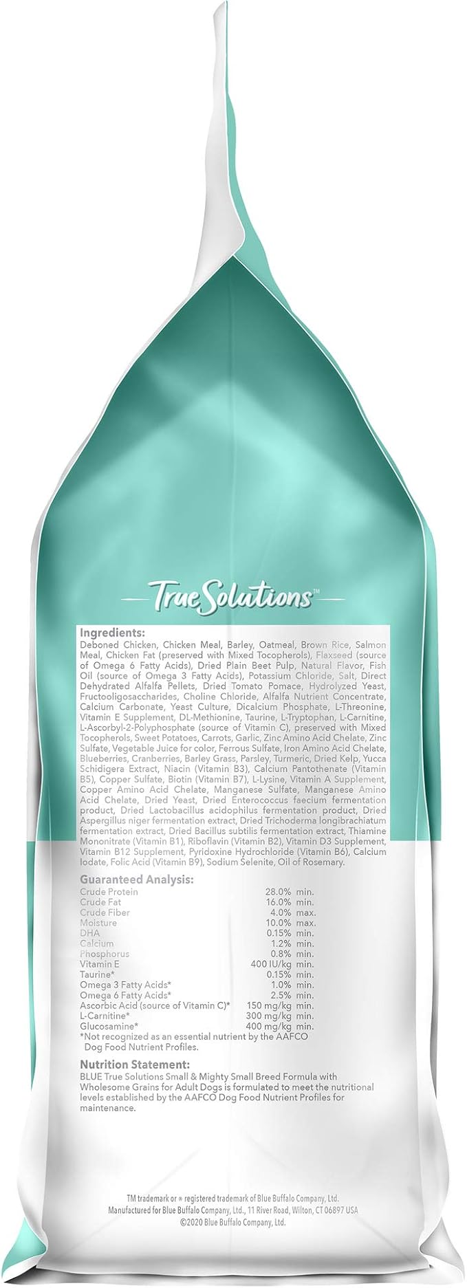 - Contains: One (1) 4-lb. bag of BLUE True Solutions Small & Mighty Adult Small Breed Dry Dog Food, Chicken