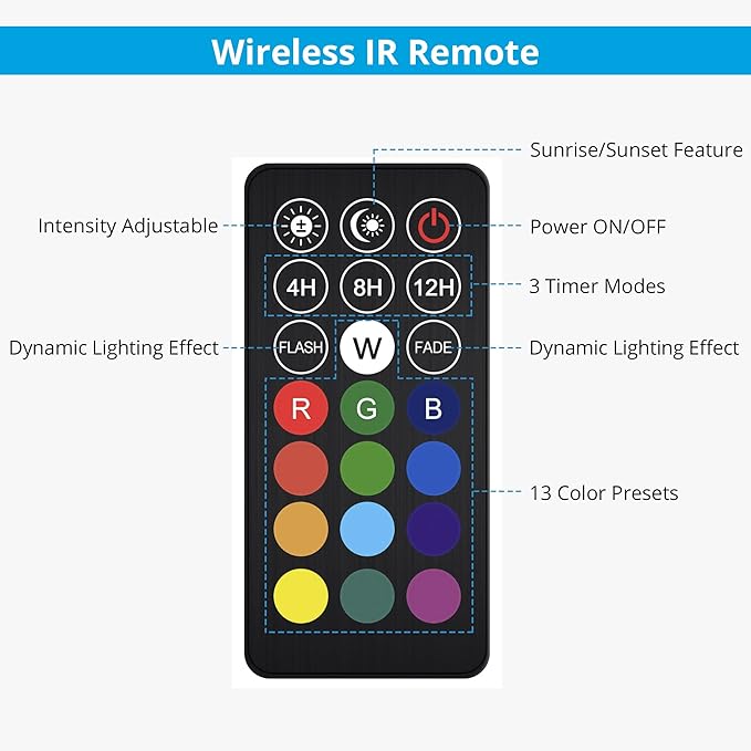 - Features 4, 8, or 12-hour day and night cycles. Includes a convenient remote control for operation