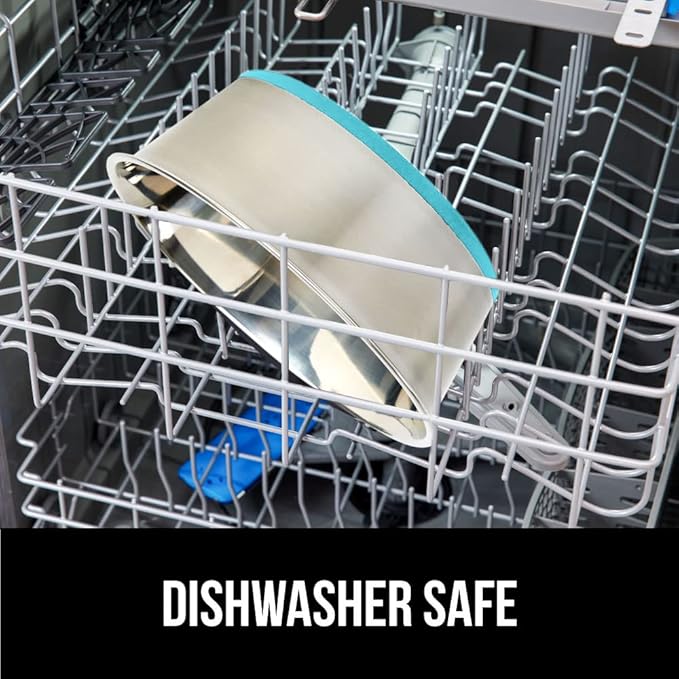Gorilla Grip Stainless Steel Metal Dog Bowl Set of 2, Rubber Base, Heavy Duty Feeding Dishes, Food Grade BPA Free, Less Sliding, Quiet Pet Bowls for Cats and Dogs, Holds 4 Cups (32 fl oz), Turquoise