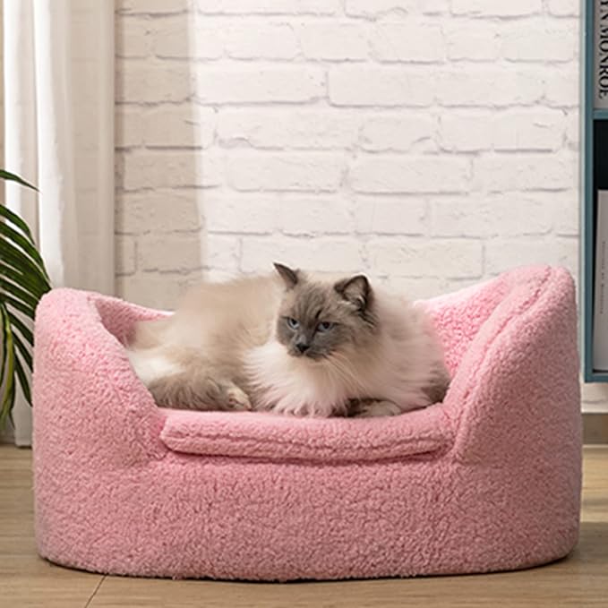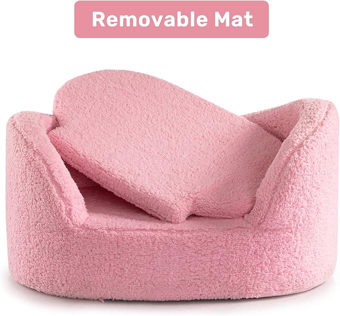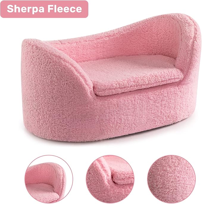 Hollypet Cat Sofa Couch, Pet Sofa for Cats and Small Dogs, Sherpa Fleece Cat Sleeping Bed, Ultra-Soft Snuggle Cat Sofa for Indoor Kitten, Luxury Mini Dog Couch Sofa Bed, Pink