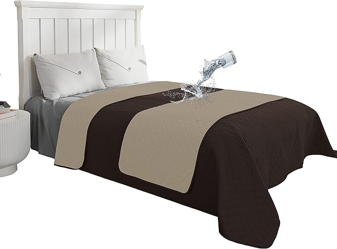 Easy-Going 100% Waterproof Dog Bed Cover Reversible Leak Proof Couch Cover Washable Sofa Cover Furniture Protector Blanket for Pets Kids Children Dog Cat (82x86 Inch, Chocolate/Beige)