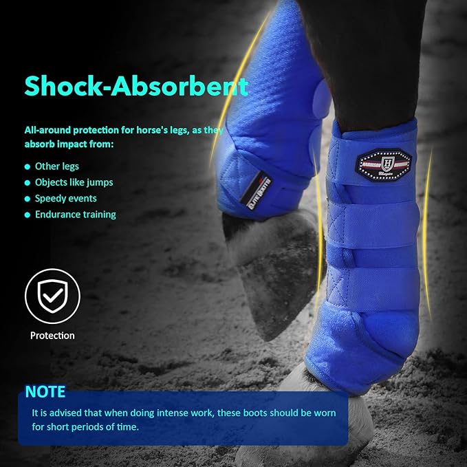 - Shock-Absorbent: The Sports Boots provide all-around, heavy-duty protection for horse's legs, against impact from its other legs or objects like jumps during strenuous, hard work such as speed events or endurance training.