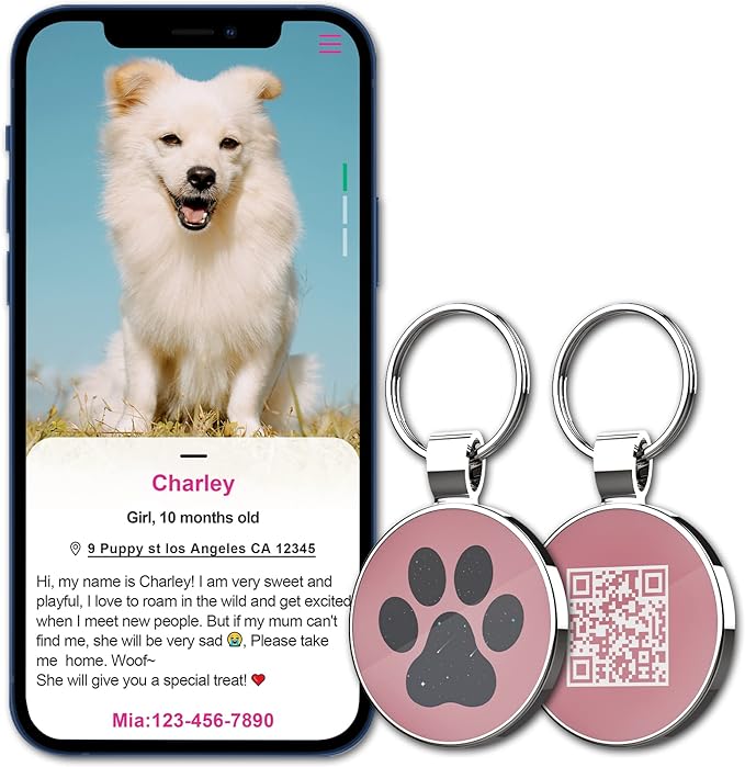 - 【Setup and use】 Scan the tag QR code to activate the tag, Links to free pet profile page, Can enter multiple emergency contact/ upload multiple pet photos/ Home Address/ Medical Info etc of your pet. One account can manage multiple pets. NO APP REQUIRED!