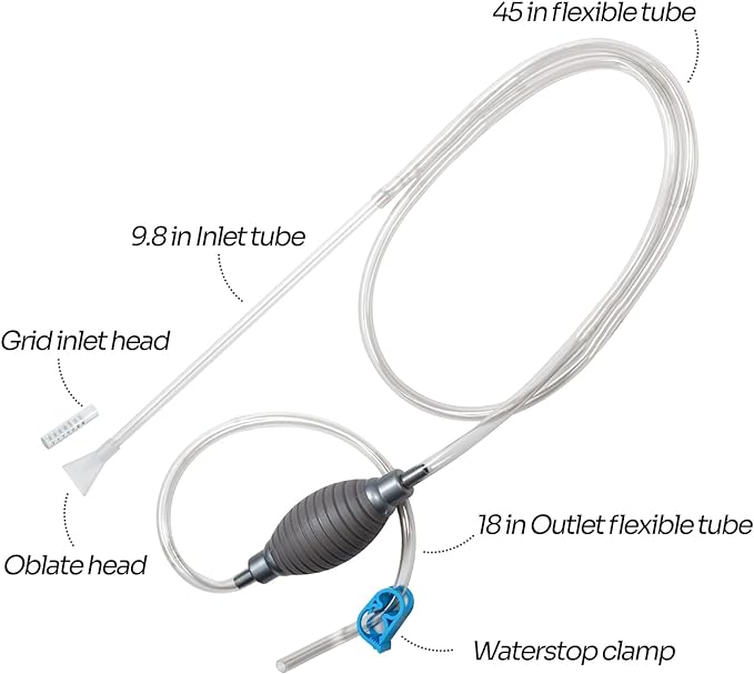 - 【2 IN 1 Multifunctional Siphon Gravel Cleaner Set】: It can work as water changer or tank cleaner as it has grid inlet head and oblate head, you can install the head as you need. Whether you have a small or extra-large tank, this flexible terrarium cleaning kit works well with all types of terrarium, the tube is long enough(79inch) and flexible, convenient to use.