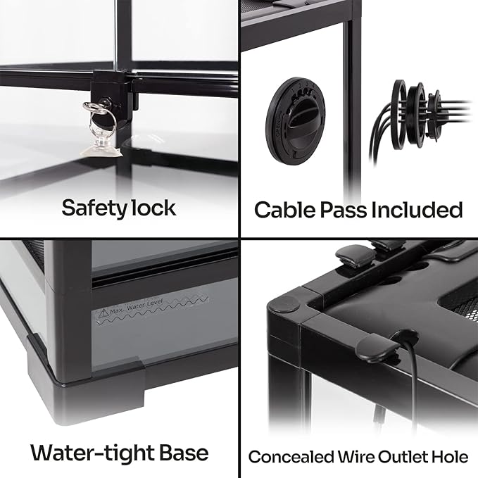 - 【Raised Bottom Frame】: This reptile tank has 8 inch deep base, waterproof bottom makes this tank can be used as rainforest tank. Raised bottom frame in order to fit a substrate heater.