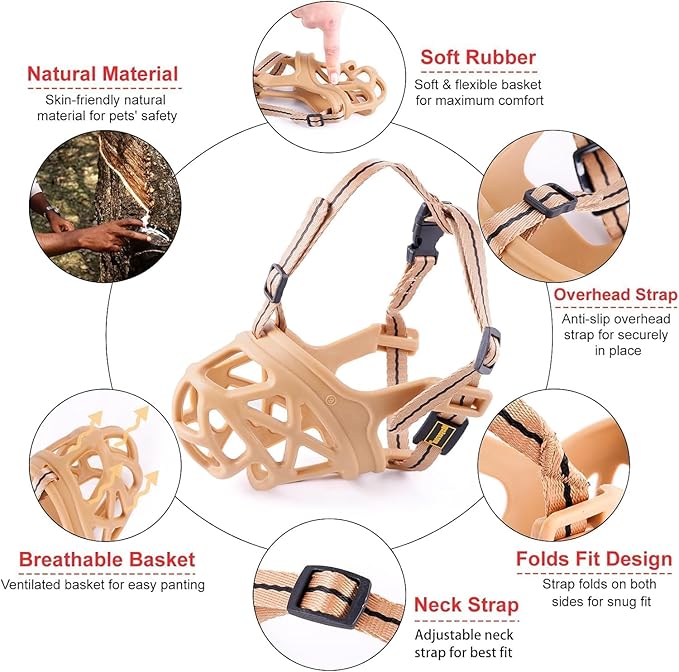 - Tough yet Soft: Made of a pliable Non-toxic rubber, The Basket Muzzle is extremely tough, long-lasting, and soft to touch, and it can be widened or narrowed if needed.