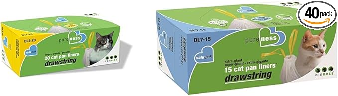 Van Ness Pets Drawstring Cat Litter Box Liners, Unscented, Large Size, 36” x 18”, 20 Count & Extra Large Drawstring Cat Litter Box Liners, 15 Count, DL7-15