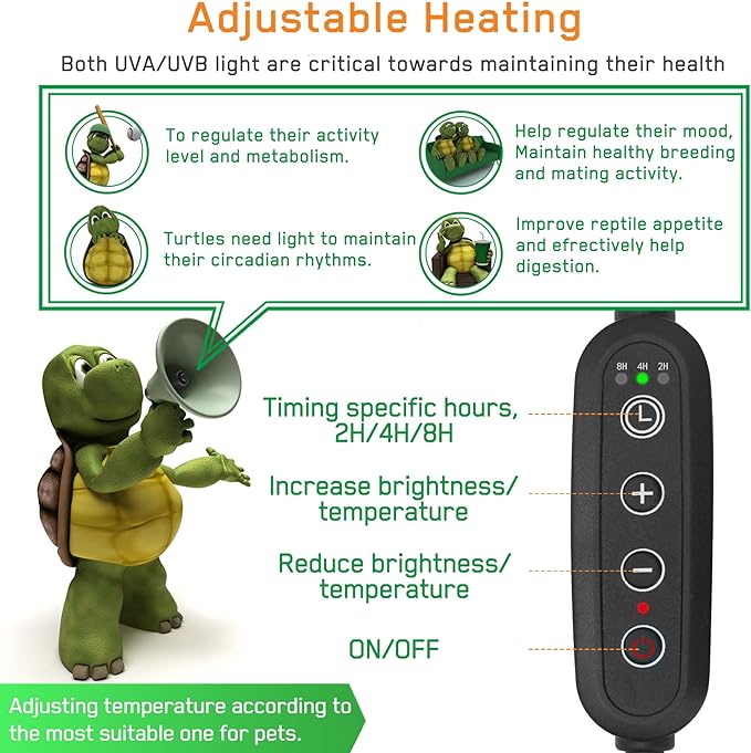 - - Easy to Use:Just choose the right spot, and fix the clip firmly that the fixture is securely attached and aimed at your pet’s favorite basking spot.