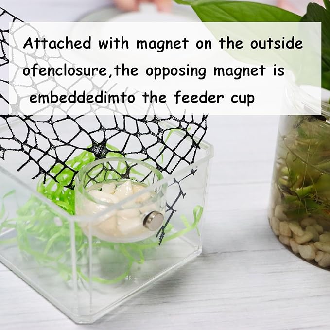 - ★★The reptile feeding bowl is mounted on a cleaned glass/acrylic surface. First attach a magnet to your enclosure, the opposite magnet is embedded in the feeding bowl, and finally attach the Food Dish to it, so it will not move when your pet is on it or jumps on it, very safe and secure. Will not hurt your pet.