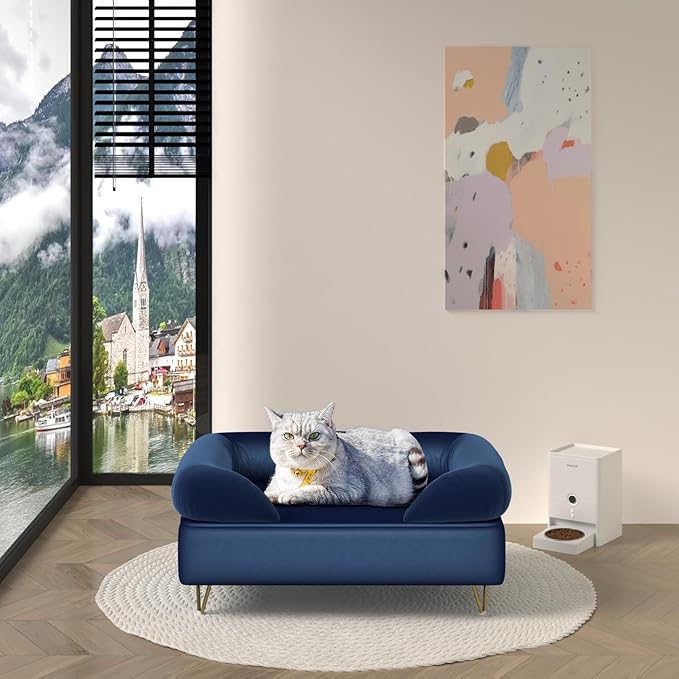 - 【Product Materials】--- Comfortable velvet fabric Pet Lounge Couch is made by surrounding cushion,wooden frame seater,and fashion gold color metal leg. cushion filling is dol cotton and foam and wooden frame is made by solid slats and foam.choice our concise style pet couch bed will be more and more warmly in your room.this dog sofa bed is the perfect pet seater product for your soulmate.