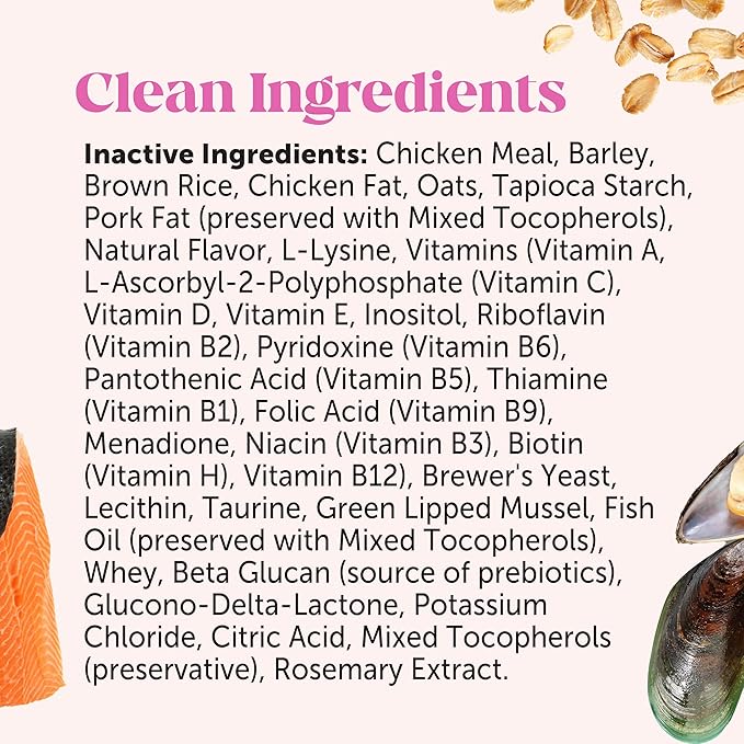 - MADE WITH NATURAL & OTHER PREMIUM INGREDIENTS LIKE LYSINE, BETA GLUCAN, AND OMEGA-3S: Multivitamin chews are filled with health-supporting ingredients you can trust. Lysine, an essential amino acid, supports immune + respiratory health. Beta Glucan, a premium prebiotic, supports gut + digestive health. Omega-3s, fatty acids from fish oil, flaxseed, and green lipped mussels, promote skin, coat, + joint health. All in a delicious chicken flavored chew your cat will love!