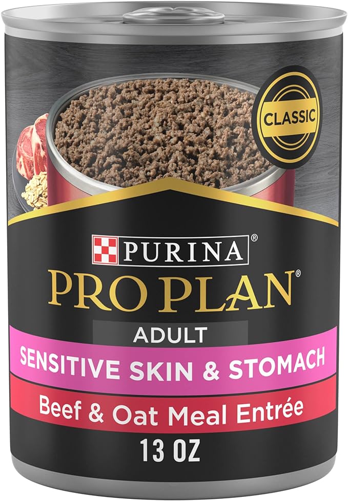 Purina Pro Plan Sensitive Skin and Stomach Wet Dog Food Pate Sensitive Skin and Stomach Beef and Oat Meal Entree - (Pack of 12) 13 oz. Cans