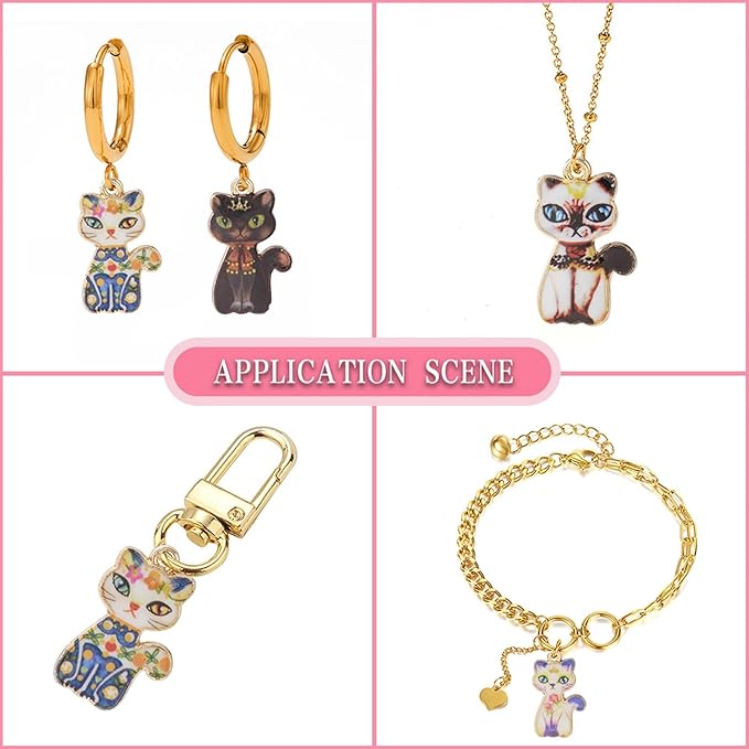 - 🌻Lovely Design: The cat charms are exquistie in different colors, it's fashion, creative, cute, full of special meanings, it is a very useful accessory, exquisite and classical design beads. It can be used in all kinds of decorations and jewelries especially in summer and parties which will remind you of wonderful time.