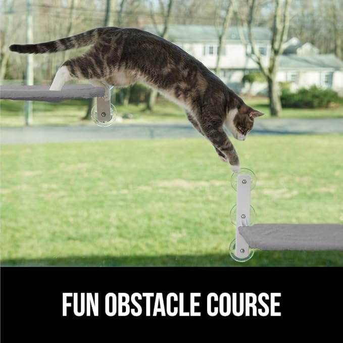 Gorilla Grip Heavy Duty Cordless Cat Window Perch, 6 Large Suction Cups, Strong Metal Frame Holds 30lbs, Foldable Indoor Hammock Bed with Reversible Washable Cover, Cats Seat Wall Shelves, Gray