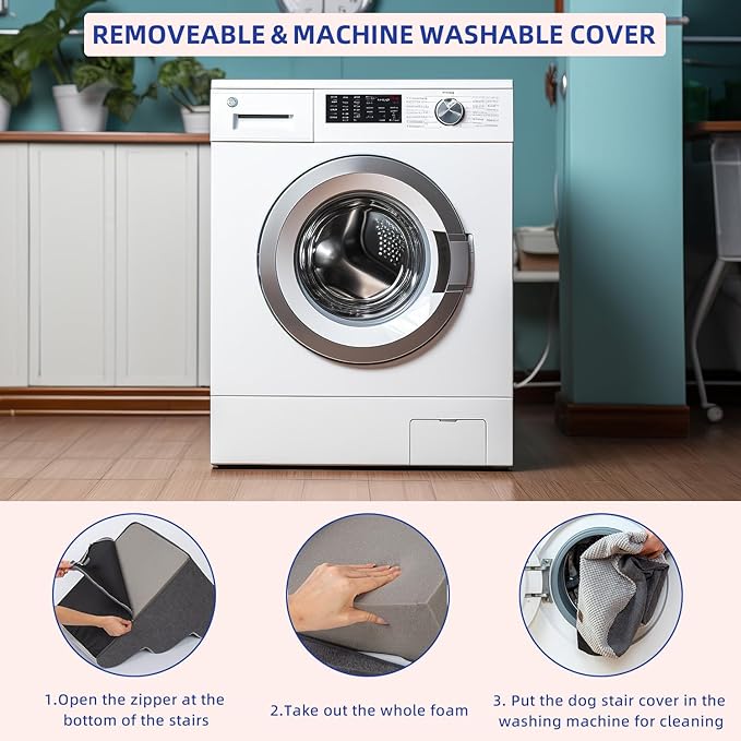 - EASY TO CLEAN - The dog step has a removable washable cover made of bonded fleece that can be hand washed or machine washed, so you don't require spending a lot of time cleaning it. It's very convenient.