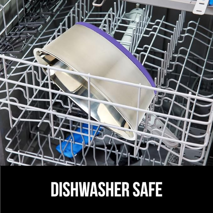 Gorilla Grip Stainless Steel Metal Dog Bowl Set of 2, Rubber Base, Heavy Duty Feeding Dishes, Food Grade BPA Free, Less Sliding, Quiet Pet Bowls for Cats and Dogs, Holds 6 Cups (48 fl oz), Purple