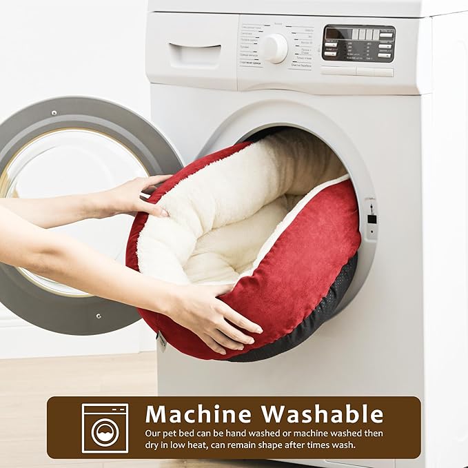 Love's cabin Round Donut Cat and Dog Cushion Bed, 30in Pet Bed for Medium or Large Dogs, Anti-Slip & Water-Resistant Bottom, Soft Durable Fabric Pet beds, Washable Calming Cat & Dog Bed Red