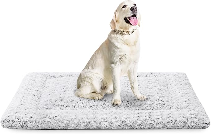 - Size Options - This dog crate pad measures approximately 41"L x 27"W x 1-1/2"H, works great as a fluffy dog bed for large size dog up to 90 pounds. A great choice if you want a softer dog crate mat for your pet which is not too thick.
