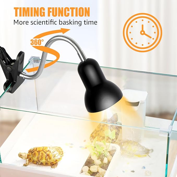 - Flexible and Convenient Design: Designed with flexibility and convenience in mind, our turtle lamp is easy to install and adjust. The adjustable stand and rotating head provide a customizable heat source, ensuring your reptiles bask comfortably. The user-friendly design makes it a breeze to create the ideal habitat.