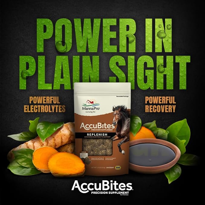 Manna Pro AccuBites Replenish Equine Supplement – Hydration & Immune Support Supplement for Horses – Contains Vitamin E & Turmeric – Turmeric & Molasses Flavored – 1.6 lbs