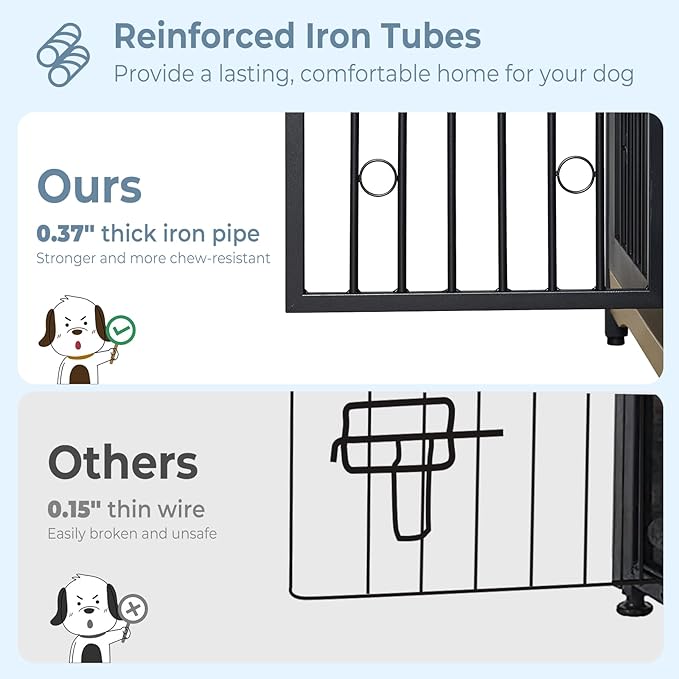 - 【Sturdy and Chew-Resistant】This dog crate furniture for 2 dogs is made of premium particle board and iron pipe, which is stronger and more chewy. Whether it's naughty entertainment or a break after a naughty play, this will accompany your dog throughout the growing stages. It's an ideal gift for your dog.