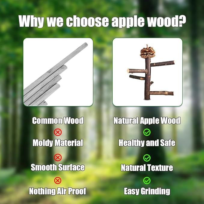 - 【Safe for Bird】Made of natural wood and stainles steel, 2LB heavy, enough to prevent tipping. Very safe for your bird, it can chew with confidence.A perfect chewing toys in bird cage accessories.